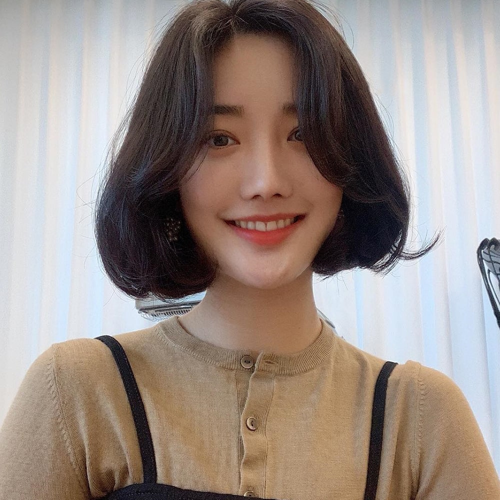 Bên cạnh đó, kiểu tóc bob mái ngố này còn làm tăng sự bầu bĩnh cho gương mặt. Đặc biệt phù hợp với những nàng mặt nhỏ góp phần tạo nên sự đáng yêu.