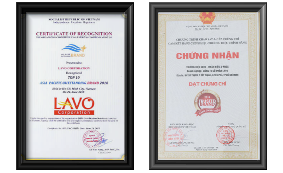 Top 10 Thương hiệu tiêu biểu Châu Á – Thái Bình Dương. Được khách hàng và đối tác tin tưởng suốt nhiều năm. Chứng nhận FDA Hoa Kỳ, GMPC, ISO 9001:2015, CGMP – ASEAN.