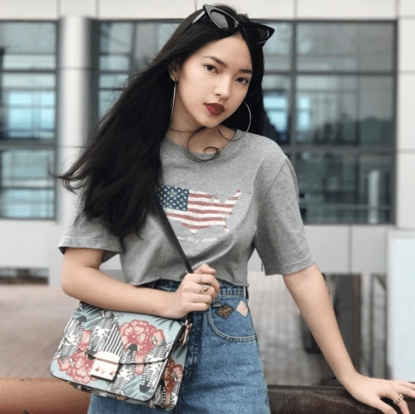 Với kiểu tóc này, Châu Bùi trông cổ điển với nét đồng như các minh tinh màn ảnh Việt của các thập niên về trước. Tuy nhiên, với phong cách ăn mặc cùng phụ kiện mà cô chọn phối hợp tạo nét chấm phá phù hợp với xu hướng hiện đại.