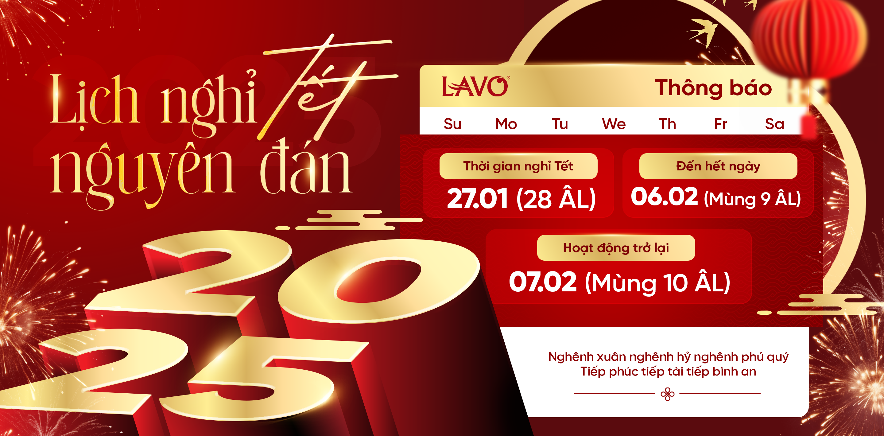 Nhân dịp Tết Ất Tỵ 2025, Công ty Cổ phần LA VO gửi lời cảm ơn chân thành đến Quý Đối Tác và Khách Hàng đã luôn tin tưởng và đồng hành cùng chúng tôi trong suốt thời gian qua.